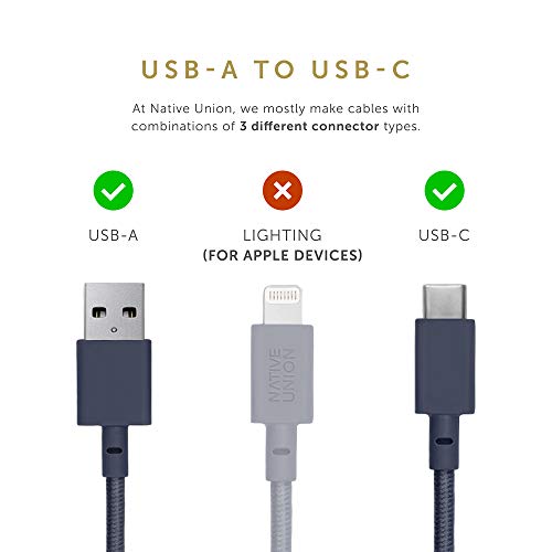 Native Union Belt Cable da USB-C a USB-A - Cavo di Caricamento Ultra Resistente da 1,2M con Cinturino in Cuoio - Compatibile con Samsung Galaxy Z Flip3, Z Fold3,S21, iPad Pro, iPad Air 5(Marine)