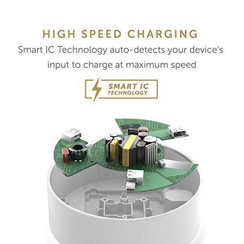 Native Union Eclipse Charger-Spina Inglese-Caricabatteria con 3 Prese USB e Porta-Cavo-Ricarica Rapida Multi-Dispositivo con Sensore Tattile Luce e Rivestimento Superiore in Vero Legno (Bianco/Legna)