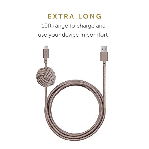Native Union Night Cavo - Cavo di Caricamento Ultra-Resistente Rinforzato da 3 Metres (Certificato Apple MFi) Lightning a USB con Nodo Ponderato (Taupe)