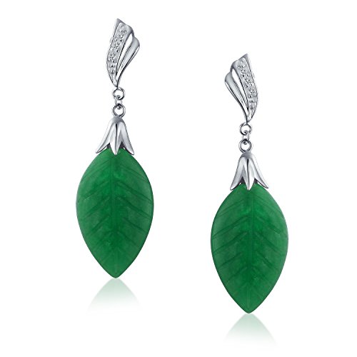 Orecchini a foglia intagliata di giada verde e accenti di pave CZ. Entrate in primavera indossando i nostri orecchini a foglia di giada.