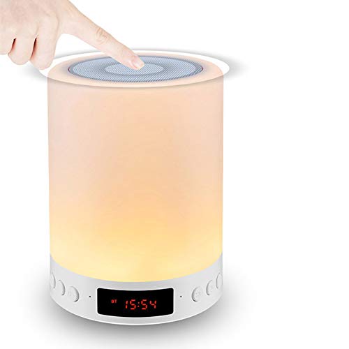 NAttnJf Wireless Touch Control Luce LED dimmerabile Altoparlante Bluetooth Senza Fili con Luce a LED Radio FM Orologio con Microfono Riproduttore Musicale Stereo
