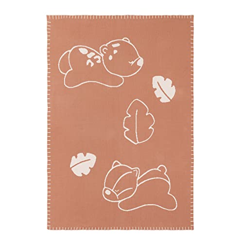 Morbida copertina con graziosa decorazione lavorata a maglia, Design reversibile, Il panda rosso Boris e il leopardo delle nevi Jungo, Dimensioni ideali per coprire, coccolare e tenere al caldo il bambino