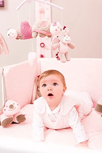 Nattou Mobile con carillon Nina, Jade e Lili, morbida ninna nanna «La-Lu», 48 x 7 x 15 cm, beige/rosa/bianco