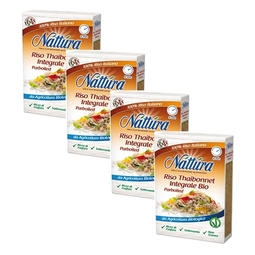 Nattura per il Tuo Benessere Quotidiano Riso Thaibonnet Integrale Biologico Pronto in 8 Minuti Ricco di Fosforo - 4 x 400 Grammi