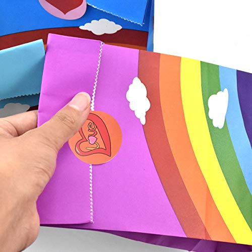 ❤Il pacchetto include: Vieni con 30 pezzi arcobaleno sacchetti di carta in 8 colori, tra cui rosso, giallo, arancione, verde, blu, viola, rosa, azzurro, 5 pezzi per ogni colore, e mettiamo a disposizione 48 adesivo cuore per te, che sono convenienti per sigillare sacchetti di carta.
