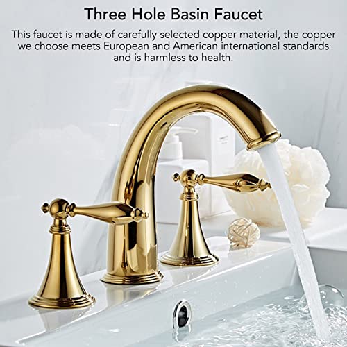 Natudeco Rubinetto a doppia maniglia Rubinetto per bagno a tre fori Rubinetto per bagno in rame diffuso Kit per finiture Valvola Rubinetto per lavabo in stile europeo(Oro)