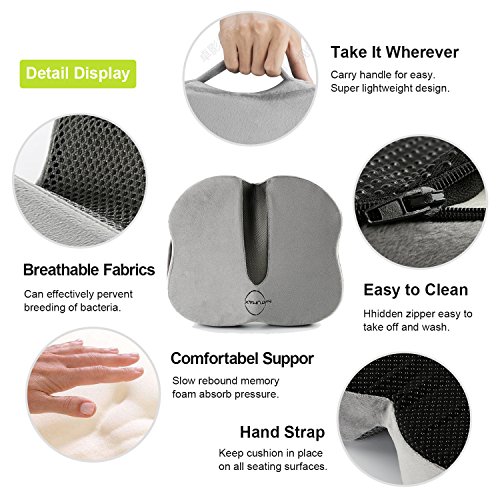 NUOVO e migliorato design: sagomato a forma di farfalla conforme perfettamente alla forma esatta del vostro natiche, efficacemente distribuisce il peso sul coccige, coccige, e hipbones, massimo sollievo la pressione e sciatica.