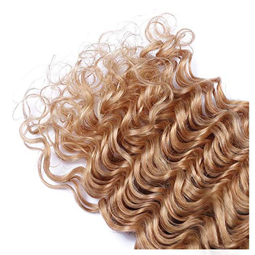 Mila Natural Capelli Umani Biondo Miele 27# 100% Remy Tessitura Extensions Honey Blonde Ricci/Deep Wave Style Brazilian Virgin Hair 300gram con Lace Closure (20"22"24"+18"closure)