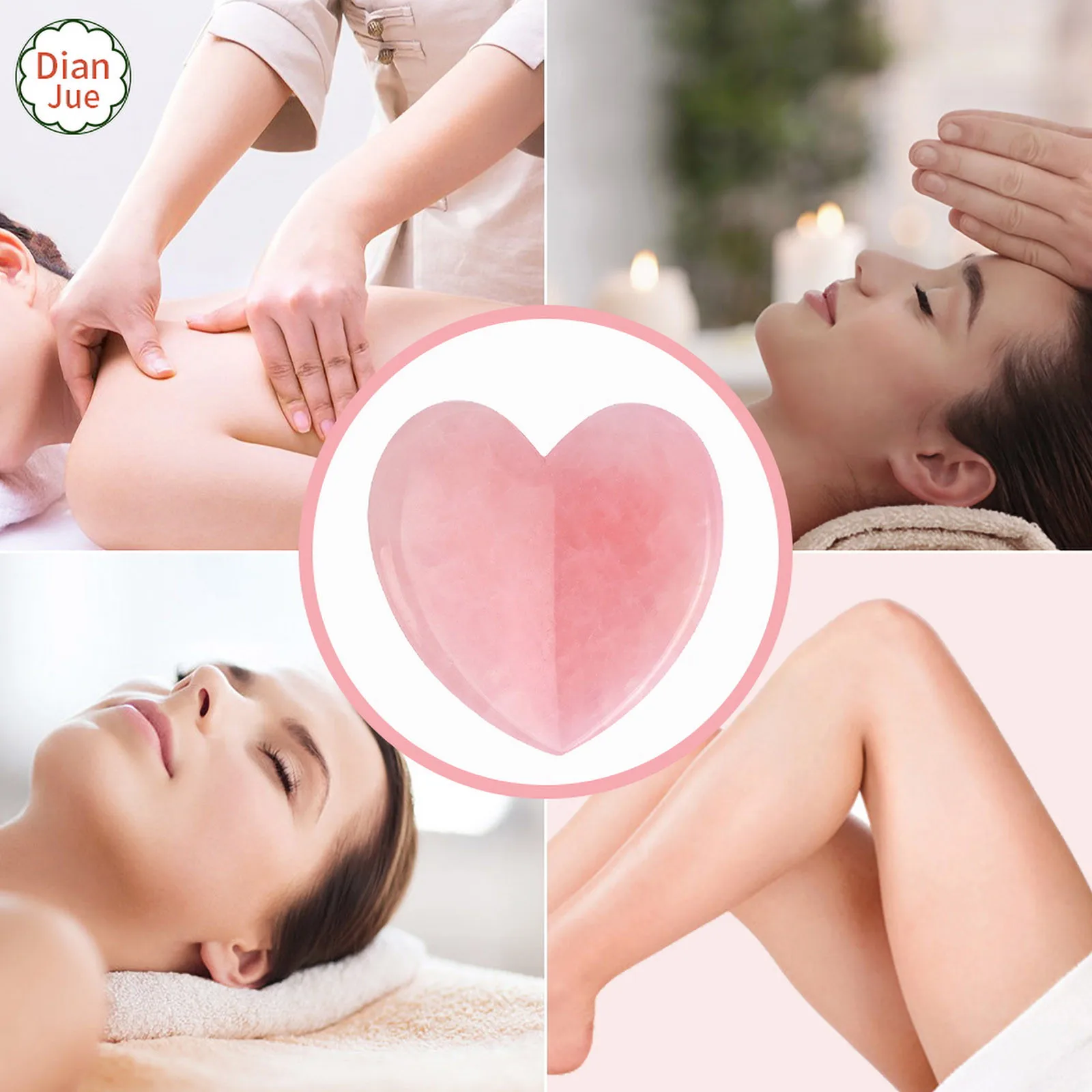 Natural Gua Sha Jade Facial Pink crystal jade heart-shaped Moving Massager Tool Facial Massage Custom Wholesale Beauty Tool