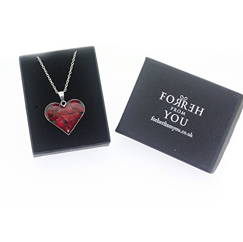 Natural Flower Jewellery - Ciondolo a forma di cuore in argento Sterling con papaveri veri