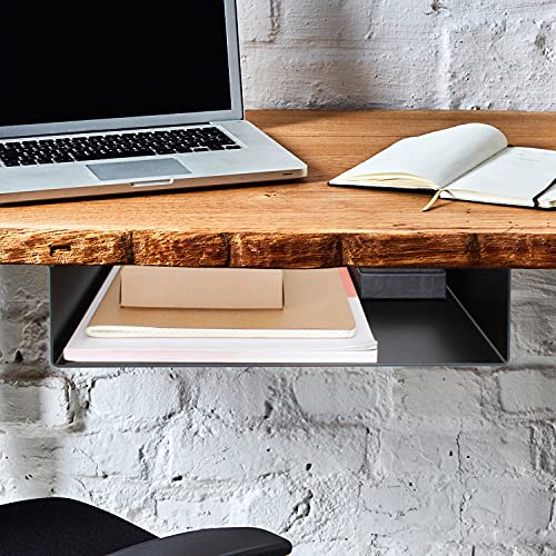 Natural Goods Berlin 1 ripiano da tavolo LADE per scrivania, cassetto, supporto da appendere, in metallo, studio, ufficio, cucina, bagno (300 mm, nero)