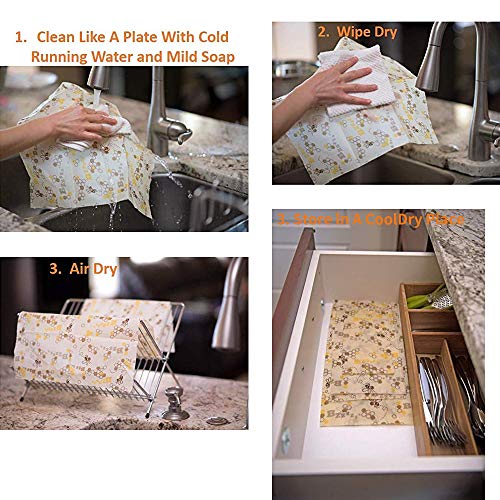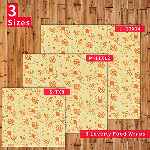 BEE IN Natural Handmade Beeswax Food Storage Wrap Set of 3 Different Sizes