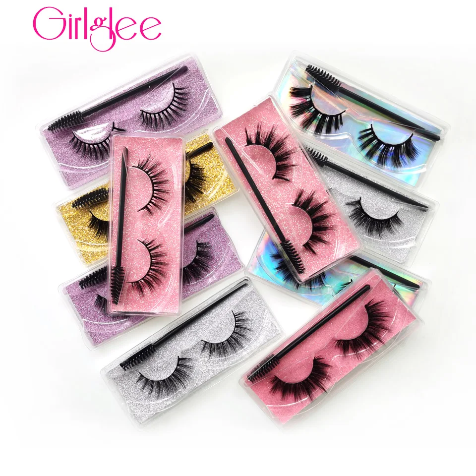 Natural Mink Lashes 14-20mm Makeup Eyelashes Soft Medium Length 3D False Eyelashes Wholesale Fake Lashes Custom Logo Girlglee
