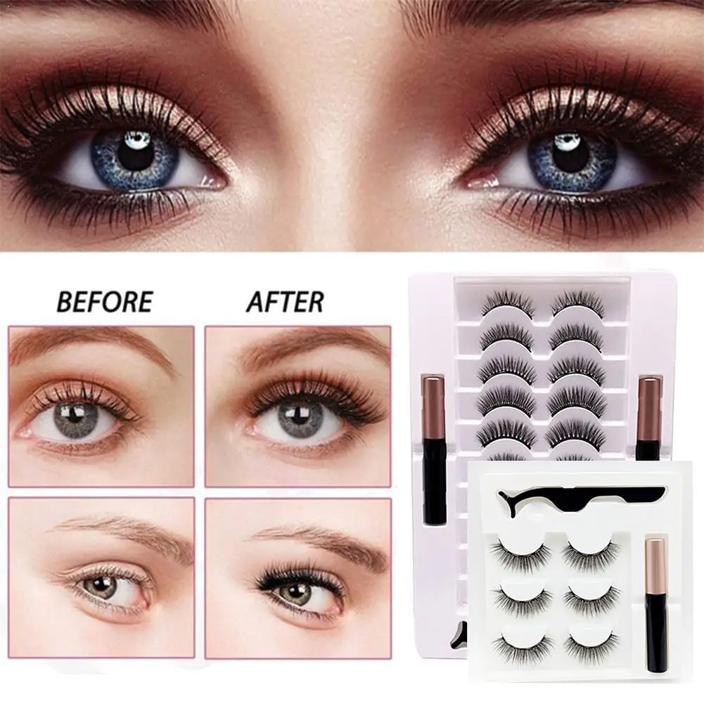 Natural Magnetic Eyelashes Set False Lashes 3d Mink Tweezer Waterproof And Eyeliner Makeup With Eyelashes Liquid I5J8