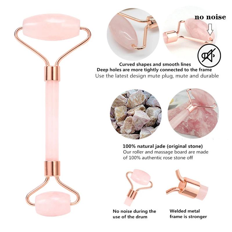 Natural Jade Face Massage Roller Rose Quartz Jade Roller Slimming Massager Roller Jade Massage Skin Care Beauty Three-piece Box