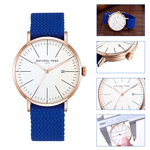 Natural Park, orologio al quarzo, analogico, unisex, cassa grande con quadrante per la data, cinturino in nylon, design semplice, orologio per uomini e donne