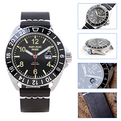 Natural Park Orologio, Uomo, Sport Casual con disco combinatore nero mano di Luminated cinghia nera di pelle