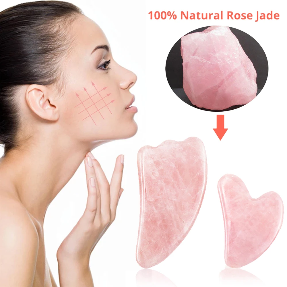 Natural Rose Quartz Jade Guasha Scraper Board Massager for Face Body Gouache Scraper Skin Lifting Wrinkle Remover Beauty Care