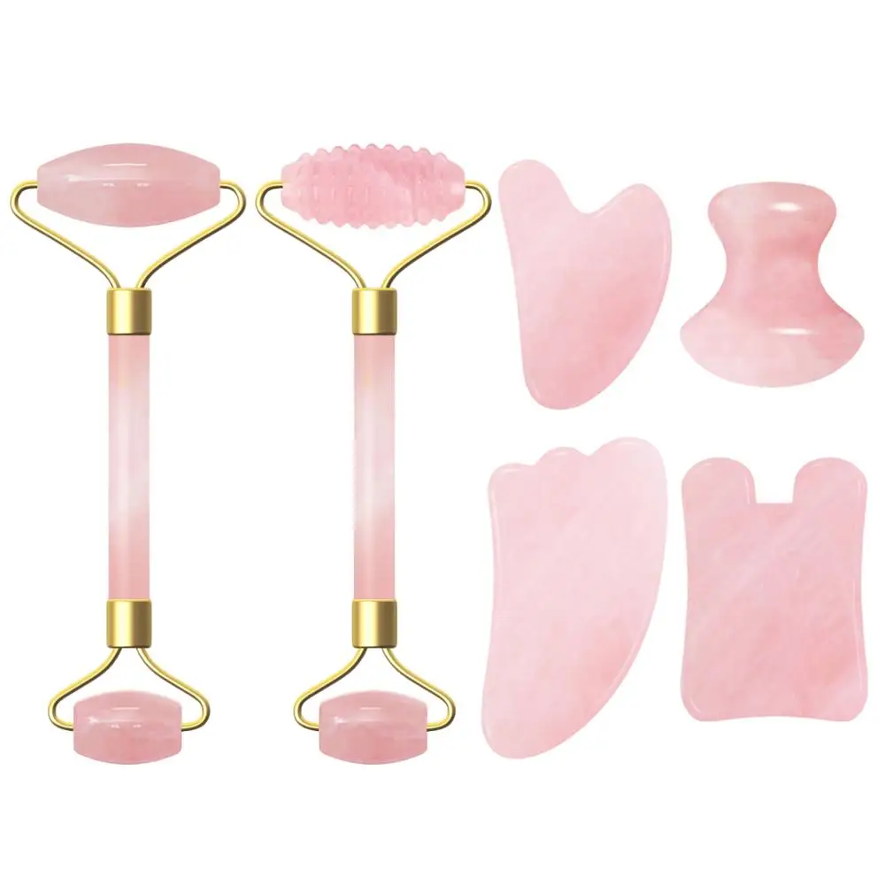 Natural Rose Quartz Jade Roller Face Massager Real Jade Gouache Scraper Facial Massager Jade Facial Roller Set Guasha Board