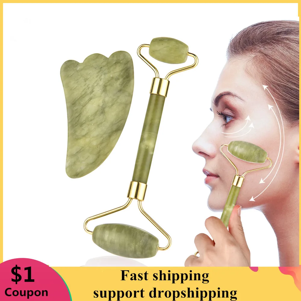 Natural Jade Roller Gua Sha Gouache Scraper for Face roller Massage Rose Quartz Body Slimming Face Lift Stone Wrinkle Remover