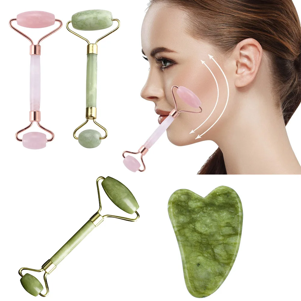 Natural Jade Stone Facial Massage Roller Beauty Tools For Face Eye Neck Massager Guasha Scraper Lift Slimming Microniddle Roller