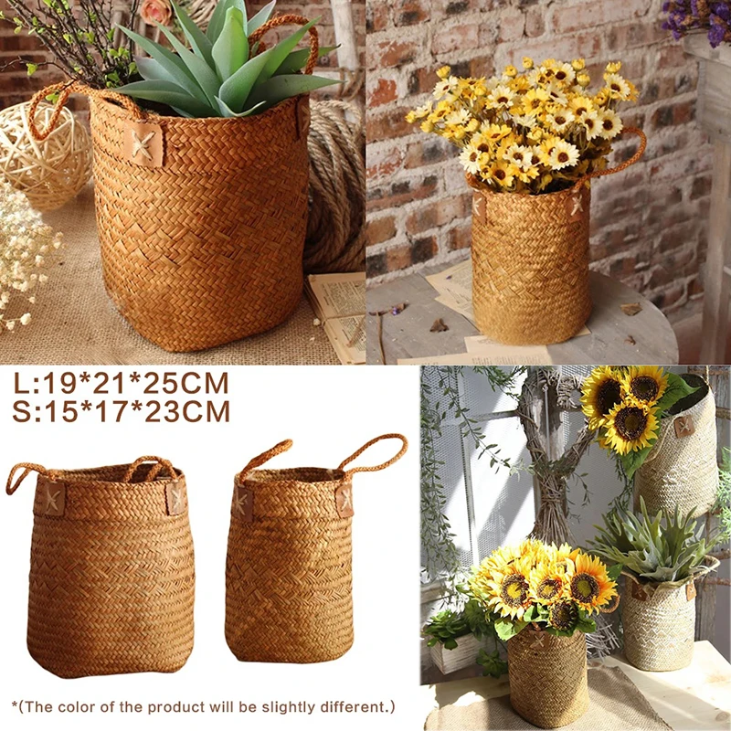 Natural Straw Basket Hand-woven Collapsible Flower Basket Dried Flower Wicker Woven Basket Fruit Basket Nordic Style GHS