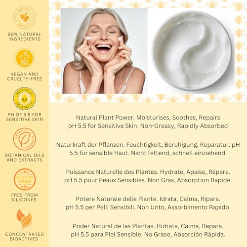 99% Naturale CREMA IDRATANTE VISO - MIELE & LAVANDA - 100 g - di BEES OF BRITAIN. Ricca, Delicata, Nutre, Idrata. pH 5.5 per Pelli Sensibili. Diamo il 5% dei Profitti per Aiutare a Salvare le Api