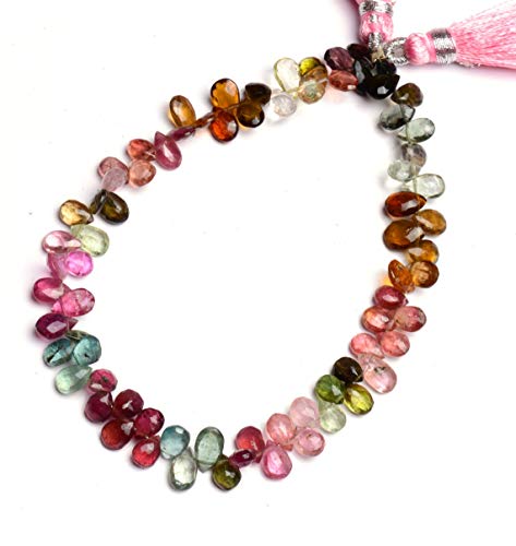Naturale Multi tormalina Perline forma di pera pietre preziose sfaccettate per la creazione di gioielli|Perline briolette sfaccettate|Collana con pietre preziose briolette|Perline allentate 6x4mm