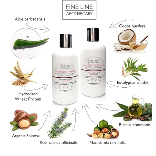 99% Naturale SHAMPOO CRESCITA CAPELLI - RICINO, ARGAN, MACADAMIA, COCCO & ROSMARINO, EUCALIPTO - 250 ml di Fine Line Apothecary. Senza Solfati, Senza Parabeni. Concentrato. pH 5.5 per Pelli Sensibili.
