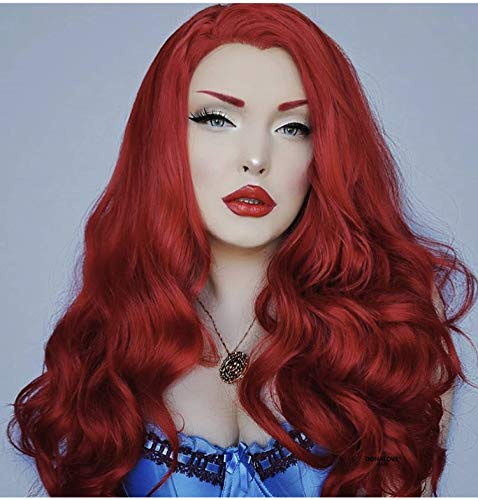 Hot Red Naturale Onda Sintetico Pizzo Frontale Parrucca Libera Parting Mezza Mano Legato Resistente al Calore Fibra Sostituzione Capelli per Donna