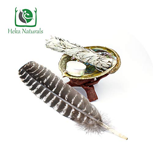 Heka Naturals Kit Smudge di Salvia: Bastoncino di Incenso di Salvia, Conchiglia di Abalone, Piuma | Kit Smudging di Salvia Bianca della California per Un'Esperienza Autentica | Set da 5 Pezzi