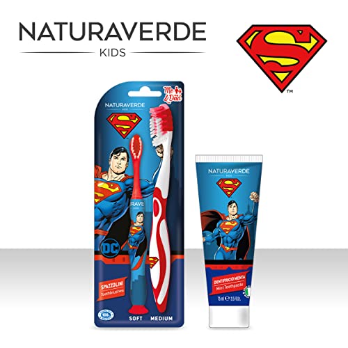 Naturaverde | Kids - Superman - Dentifricio alla Menta Dolce per Bambini, Dentifricio Bambini con Formula Delicata, Dentifricio Superman, 75ml