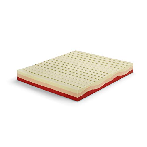CARATTERISTICHE: Misure: H 23 cm x L 80 cm x P 190 cm - Peso: 16 kg - Materiale strato 1: Memory ad alta densità bugnato - Materiale strato centrale: Poliuretano a portanza differenziata- Materiale strato 3: Schiumato ad acqua bugnato - Livello di rigidità: Medio - Rivestimento sfoderabile e lavabile in lavatrice. No centrifuga. No stiro