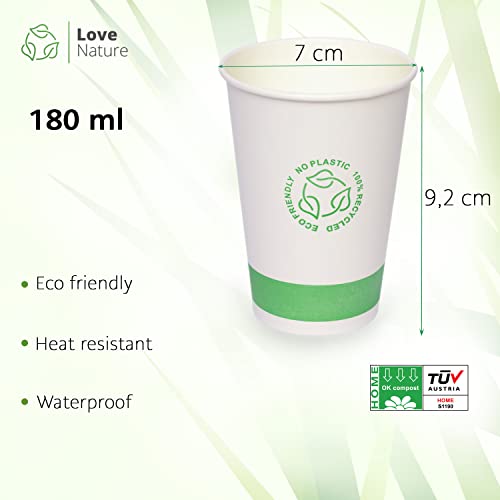 Love Nature Bicchieri di carta da 180 ml, 50 pezzi, colore bianco, usa e getta, tazza da caffè monouso, tazza da caffè monouso, tazza da caffè, tazza usa e getta