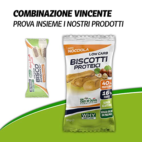 WHY NATURE BISCO SANDWICH - Barretta Proteica - Biscotto Proteico Ricoperto di Cioccolato - Snack Proteici - Gusto Cacao Nocciola - 45 gr
