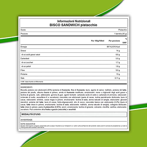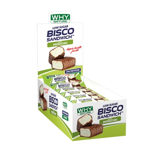 WHY NATURE BISCO SANDWICH - Barrette Proteiche - Biscotti Proteici Ricoperti di Cioccolato - Snack Proteici Gusto Pistacchio - Box da 21 Pezzi - 45 gr
