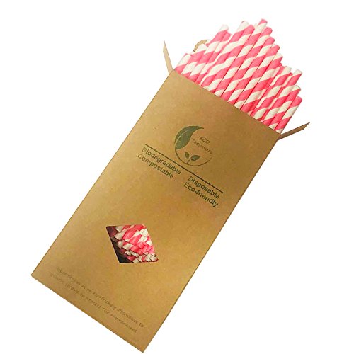 YiYi Nature Life Cannucce di carta a righe rosa, atossiche rosa e bianche, cannucce biodegradabili per feste, cake pops, cake topper