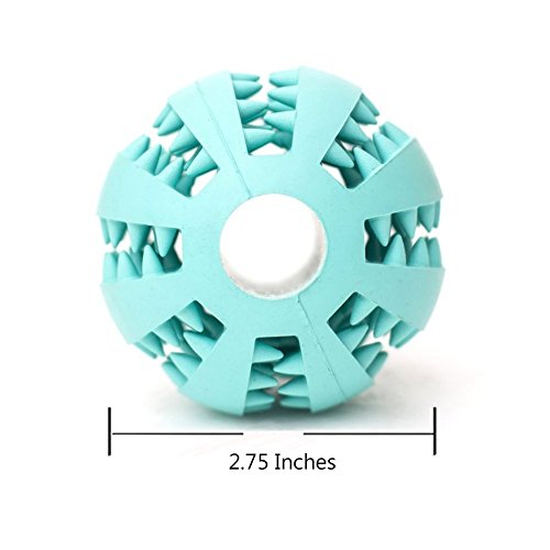 Diameter: 2.75 inch/ 7 cm. Fill the ball with your dog's favorite treats or food and watch them roll it around and try to get the treats out.