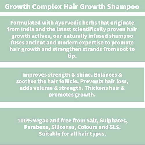 SHAMPOO COMPLESSO DI CRESCITA: formula arricchita deterge in profondità, tonificante il cuoio capelluto per una crescita ottimale dei capelli. Appositamente realizzato per diversi tipi di capelli, preparando il terreno per capelli vivaci e pieni.