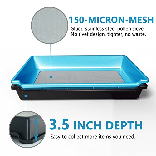 Naturehydro Vassoio per rifilare con setaccio a secco, per polline ed erbe aromatiche, con setaccio 2 in 1, schermo da 150 micron, 2 forbici e pennello (blu)