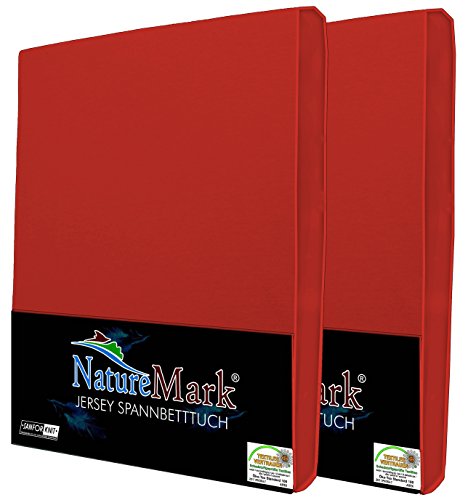 NatureMark, confezione da 2 lenzuoli con angoli in jersey, in 100% cotone, disponibili in molte misure e colori. Qualità certificata Öko-Tex Standard 100, 100% cotone, Rot, 2er Pack 90x200 - 100x200 cm