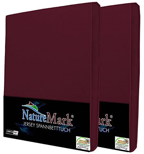 NatureMark, confezione da 2 lenzuoli con angoli in jersey, in 100% cotone, disponibili in molte misure e colori. Qualità certificata Öko-Tex Standard 100