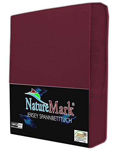 NatureMark Jersey Lenzuolo con angoli, 100% Cotone, in molte misure e colori, Lenzuolo Sotto con Angoli Elasticizzato, rosso bordeaux, 120 x 200 cm
