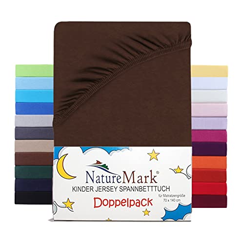 NatureMark Set di 2 lenzuoli con angoli elasticizzati per bambini, in jersey, 100% cotone, per culla e lettino, 70 x 140 cm, marrone cioccolato