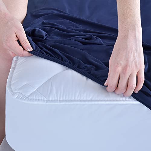 NatureMark Lenzuolo con angoli elasticizzati Basic per materasso a molle e ad acqua, 200 x 220 cm, 40 cm di altezza, 200 x 220 cm, 100% cotone, blu navy