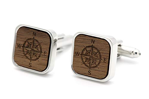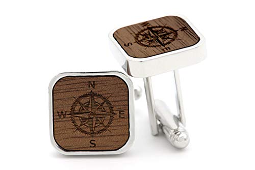 ✅ Contenuto della confezione: 1 paio di gemelli in argento in legno con incisione a bussola | Dimensioni: 2 x 2 cm | Tipo di legno: noce. Gioielli per uomini per qualsiasi outfit o come regalo perfetto