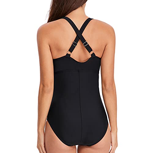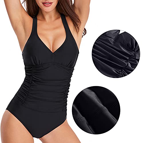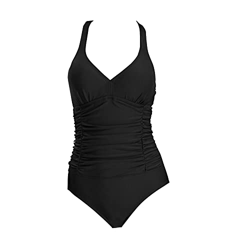 Naudamp Costume da Bagno da Donna con Scollo a V Costume Intero da Bagno Imbottito con Ruches e Controllo della Pancia