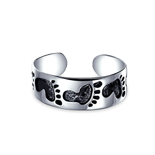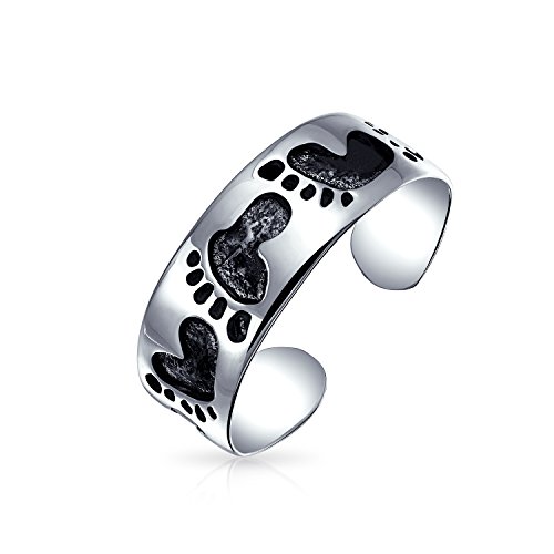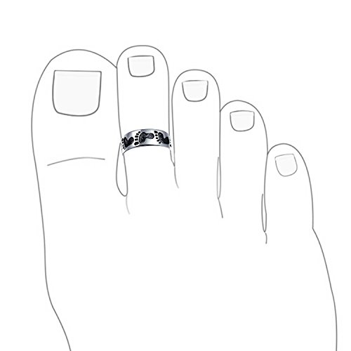 Nautical Beach Sand Foot Prints Oxidized Midi Band Toe Ring Per Donne .925 Argento Sterling Regolabile