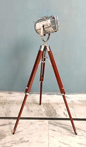 Nautical Chrome Spot Luce Lampada da Terra con Treppiede in Legno Handmade Marine Studio Searchlight Casa Decorativo E 27 Lampadina Lampada