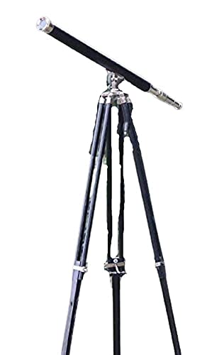 Nautical Decor Chrome & Leather Harbour Master Telescope Black Wooden Stand Faux Leather By NAUTICALMART